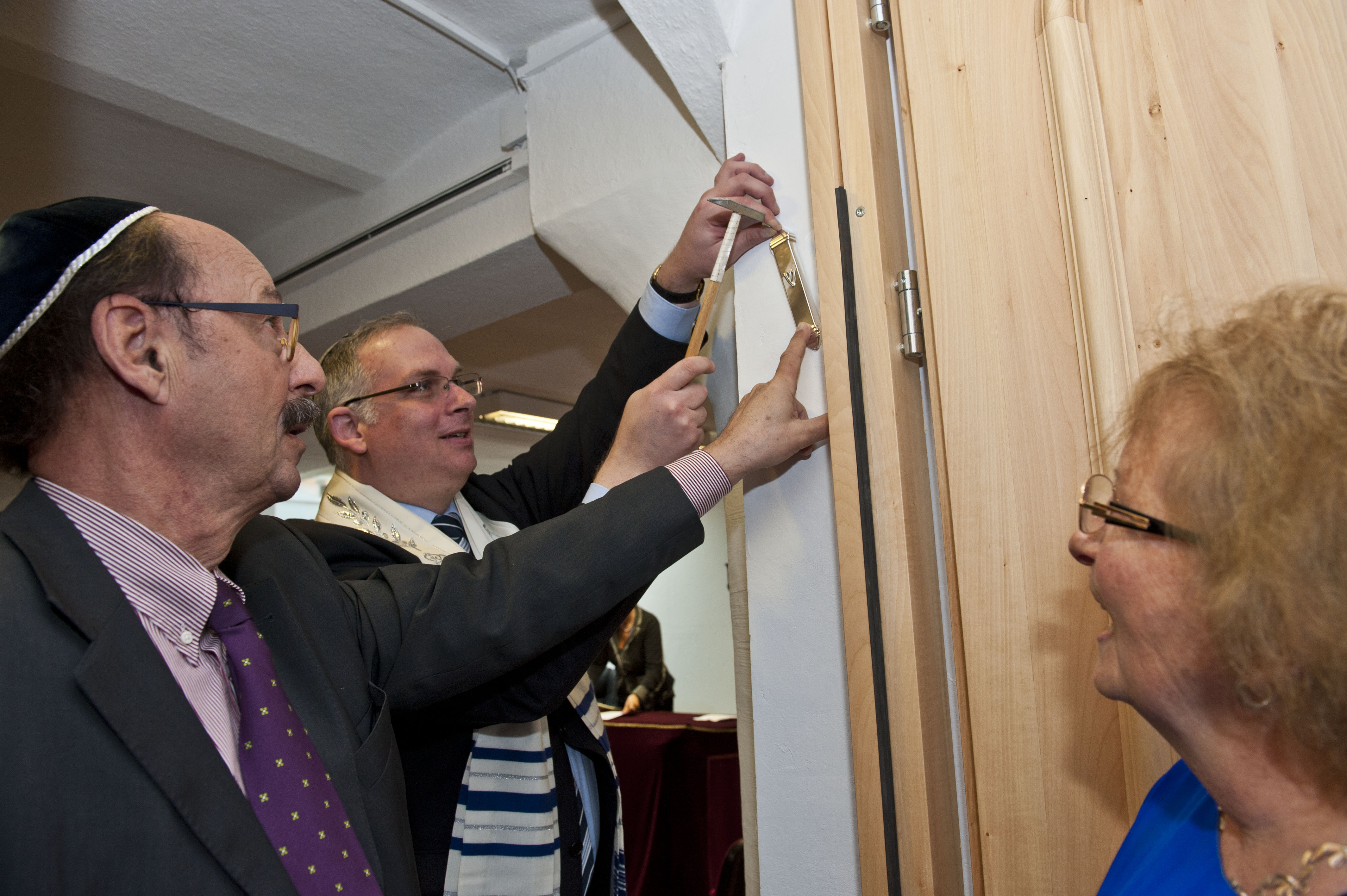 Anbringen der Mesusa durch Landesrabbiner Jonah Sievers und Grußwort
